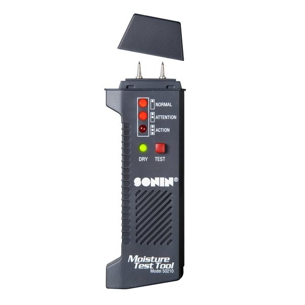 The Sonin Moisture Test Tool uses a 4 LED light system to alert users to possible moisture problems. This tool is especially valuable for any homeowner or do-it-yourselfer who is about to paint, wallpaper, stain their deck, or put down carpet or tile. We designed this unit with the DIYers and homeowners in mind, with an accessible retail price.